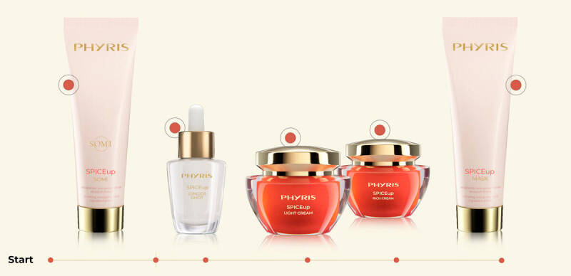 Die SPICEup-Erlebnis-Welt setzt auf die Wirksamkeit kraftvoller exotischer Gewürze, um die Haut wirkungsvoll zu pflegen und die elastinen Fasern aufzubauen und zu stärken. Das exklusive Zusammenspiel aus SOMI und den darauf abgestimmten SPICEup-Pflegeprodukten garantiert ein belebendes Schönheitsritual.