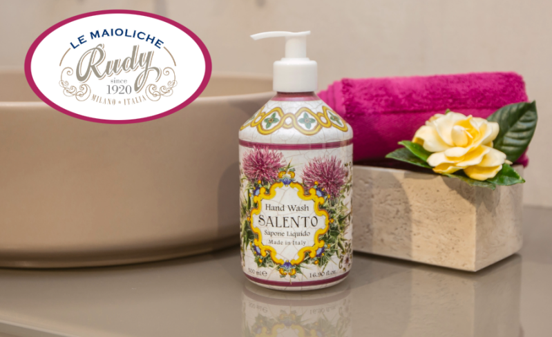Die Flüssigseifen, Raumdüfte und Badeschaum & Duschgele von Rudy Profumi LE MAIOLICHE stehen nicht nur als Pflege sondern vor allem auch als Einrichtungsaccessoire.