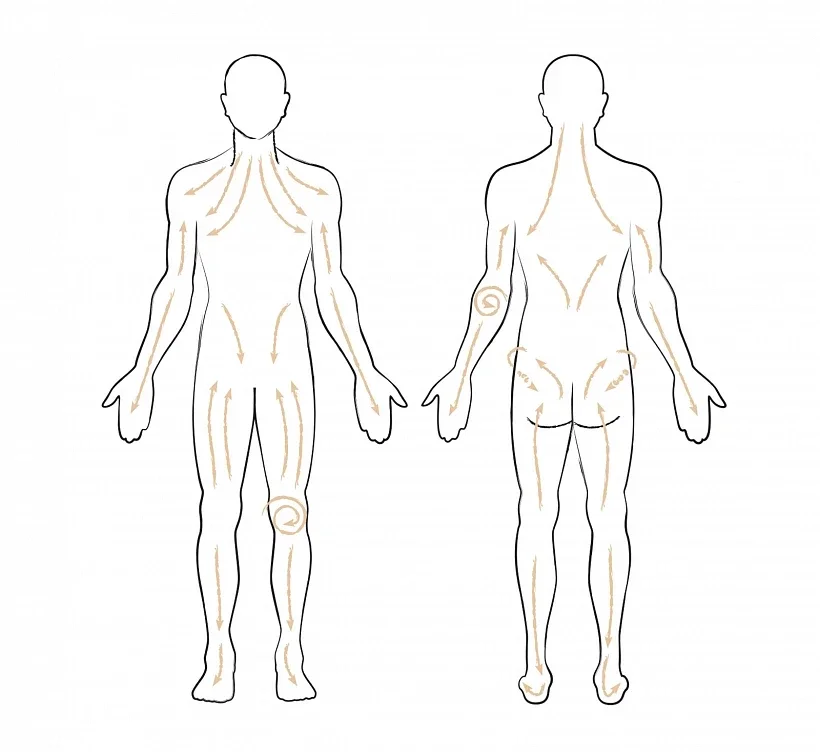 Bürstenmassage muss immer in Ausscheidungsrichtung verlaufen, also in Richtung „Abfluss“.