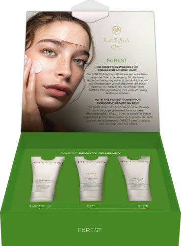 Das exklusive Zusammenspiel aus SOMI , dem einzigartigen Wirkstoff-Primer, und den darauf abgestimmten FoREST Pflegeprodukten garantiert ein entschleunigendes Schönheitsritual.
