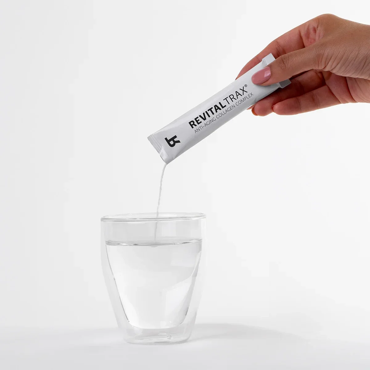 Kollagen ist für die Festigkeit und Elastizität Ihrer Haut verantwortlich. Als Inhaltsstoff wird Kollagen seit vielen Jahren in Produkten verwendet, die auf die Haut aufgetragen werden, aber wir empfehlen, Ihrer Haut Kollagen von innen heraus durch ein Nahrungsergänzungsmittel wie den RevitalTrax Anti-Aging Beauty Collagen Complex als Teil Ihrer täglichen Ernährung zuzuführen. Dadurch wird die Haut von innen heraus verschönert und die sichtbaren Zeichen der Hautalterung reduziert.
