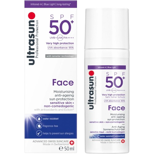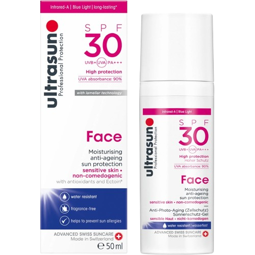 Sowohl das Ultrasun Face SPF30 Sonnschutz Creme-Gel als auch das Ultrasun Face SPF50+ Sonnschutz Creme-Gel bietet zuverlässigen Schutz und feuchtigkeitsspendende Pflege für Gesicht, Hals und Décolleté.