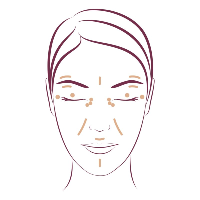 - Als Highlighter: Einen helleren Farbton wählen, um die höchsten Punkte des Gesichts (Brauenbogen, Amorbogen, Nasenspitze) hervorzuheben.